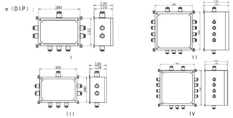 6、接線箱進(jìn)線口規(guī)格常規(guī)為英制管螺紋,也可以根據(jù)用戶要求加工成公制螺紋或NPT等螺紋,但須在訂貨時(shí)備注。